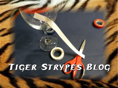 Start by putting the star stickers in a spot on the inside of the glass (make sure the stickers you buy are the same color on both sides, so that the sticky side isn’t white, etc.) Arrange them in any fashion you wish and however many you want. The size of this spot will determine how much blue tape you use.