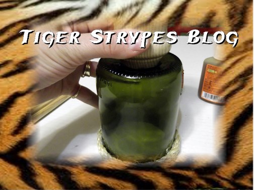 So I missed everyone last week!!! We were on a cruise to Alaska that my husband’s parents blessed us with for the family. What a beautiful place, we had a great time. Now back to the regular grind of laundry, housework, etc. Thank goodness for crafting!!! I think I’d go crazy if all I could focus on was the chore list!! ha/ha I’m so into the bottle cutting, I had to make another project. If you didn’t see my first one, check it out here! This one could be changed out to match any decor (different colors, added embellishments, etc.). Hope you enjoy!!
