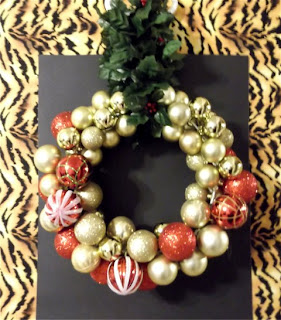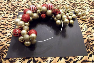 3. Finish the circle by either wiring or taping (like I did, shown) the ends together to make a full circle. After this, arrange your ornaments a bit more to compensate for the space.