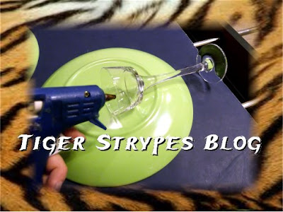 Now, center the one you are using for the center on the smaller plate, and glue into place.