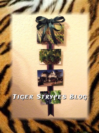 Measure your photos and space them at your desired measurement to find out how much ribbon to cut at the desired length (I used two different colors of ribbon for a layered effect).