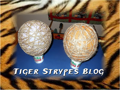 When you have the twine completed, let the balloons sit in the cups to dry for about 3-4 hours.