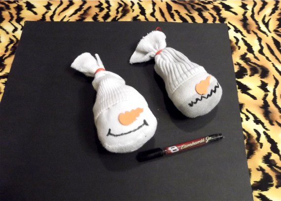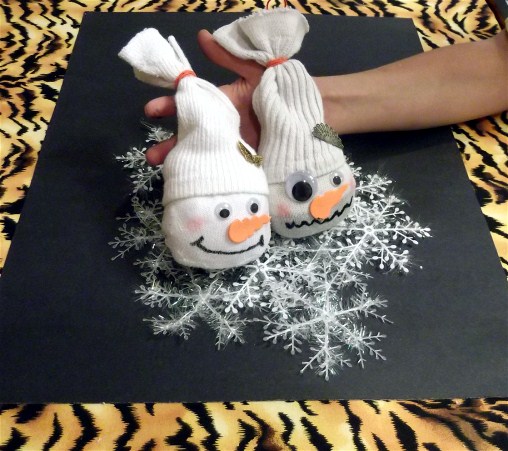 It’s a good idea to “utilize” all the single socks in the house. They will be snowmen soon.